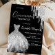 Silver Glitter Drips Dress Black Quinceañera Invitation