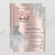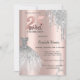 A modern, chic and glamourous Sweet 25th with glitter drips, dress, and Eiffel tower on a rose gold background.