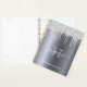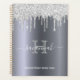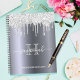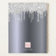 A faux silver looking background with elegant faux silver glitter drips, paint dripping look. Personalize and add a name, monogram letter and a title. The name is written in white with a large modern hand lettered style script with swashes. White and gray colored text. To keep the swashes only delete the sample name, leave the spaces or emoji's in front and after the name.