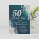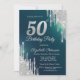 Silver Glitter Drips Green 50th Birthday Invitation