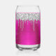 Silver Glitter Drips Hot Pink 21st Birthday Can Glass