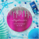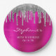 Silver Glitter Drips Hot Pink Foil 50th Birthday Paper Plate