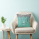 Silver Glitter Drips Light Teal Monogram Name Throw Pillow