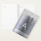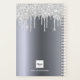 A faux silver looking background with elegant faux silver glitter drips, paint dripping look. Personalize and add a name, monogram letter and a title. The name is written in white with a large modern hand lettered style script with swashes. Grey and black coloured text. To keep the swashes only delete the sample name, leave the spaces or emoji's in front and after the name.