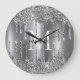 Bring a cool modern elegance to any room with this silver glitter drips personalized wall clock. Featuring a sleek faux glitter cascade design with your custom monogram and name, this clock adds a refined touch of sparkle to your wall decor.