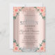 Silver Glitter Drips Rose Gold Floral Sweet 16 Invitation