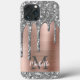 Silver Glitter Drips Rose Gold Metallic Monogram Case-Mate iPhone Case
