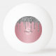 Silver Glitter Drips Rose Gold Pink Monogram Name Ping Pong Ball