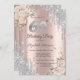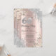 A modern, chic, and glamourous with silver glitter drips, and flowers on a rose gold background.
