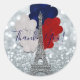 Silver Glitter Eiffel Tower Red White Blue Party Classic Round Sticker