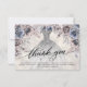 Modern floral Quinceañera thank you card. Design featuring silver gown, floral elements on a bright pearl background. Personalize with your name and thank you message.