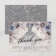 Silver Glitter Floral Quinceañera Thank You Card