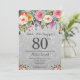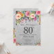 Silver Glitter Floral Surprise 80th Birthday Invitation