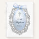 Silver Glitter Frame Blue Bow Baptism Guest Book