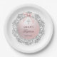 Silver Glitter Frame Pink Bow Baptism Paper Plate