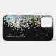 Fun girly faux silver glitter on black background. Custom name option. Modern, trendy, and cute.