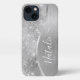 Easily personalize this silver brushed metal and glamourous faux glitter patterned phone case with your own custom name.