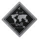 Elegant silver glitter graduation cap, and world map on black and silver glitter background .