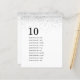 A size 4.5 x 5.6” semi-gloss 110lbs weight, which is of similar thickness to a postcard, with ONE per sheet. Silver Glitter Guest Names Table Number. Simple contemporary style with the table number larger in stylish lowercase and your guest names for the table beneath and lots of of white space with a border of silver faux glitter at the top. Easily personalise the text to your own details. The same design is on the back