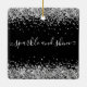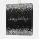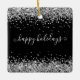 Silver Glitter Happy Holidays Sparkle shine Black Ceramic Ornament