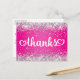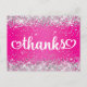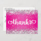 Silver Glitter Hot Pink Hearts Sweet 16 Thanks Postcard