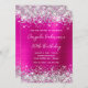 Silver Glitter Hot Pink Monoline 80th Birthday Invitation