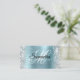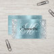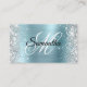Create your own faux sparkly silver glitter and light blue satin foil business cards.