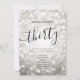 Elegant Glam Silver Glitter Lights 30th Birthday Script template featuring party program, menu text, glitter lights, and modern typography script.