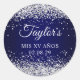 Silver Glitter Navy Blue Mis XV Anos Classic Round Sticker