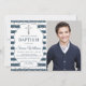 Silver Glitter Navy Blue Stripes Baptism Photo Invitation