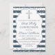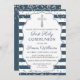 Silver Glitter Navy Blue Stripes First Communion Invitation