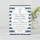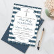Silver Glitter Navy Blue Stripes First Holy Communion Invitation