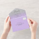 Silver glitter ombre lavender script wedding all in one invitation