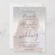 Silver glitter ombre pink script photo wedding invitation