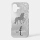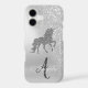 Cool silver glitter unicorn on silver bokeh ombre background with your name.