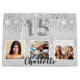 A gift bag for a girly and glamourous Quinceañera, 15th birthday. A silver looking background with glitter dust. Personalize and add 3 photos and a name. Number 15 is written with a balloon style font. Perfect as a party favour bag or as a gift bag.