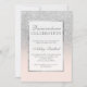 A modern, pretty chic and elegant faux silver glitter shower ombre with blush pink colour block Quinceañera birthday party invitation with and elegant silver frame Perfect for a princess Sweet fifteen.