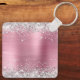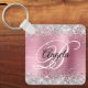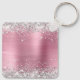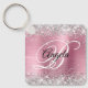 Silver Glitter Pink Foil Fancy Monogram Keychain