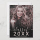 A modern, pretty chic grey silver glitter gradient ombre with soft pastel blush pink graduation party invitation with 5 of your custom photo with glitter ombre pattern fading onto a pink background and a modern stylish script calligraphy.