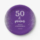 Silver Glitter Purple 50th Birthday Party Paper Plate