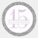 Sparkly silver faux glitter with lavender purple (text colour is editable) birthday age and name text. Great accent for an elegant and modern 15th birthday party, Quinceanera, quince años, or customize for any birthday celebration. The artwork is a printed image of glitter - no real glitter is used. Visit the Paper Grape Zazzle shop for coordinating party goods, stationery, and invitations.