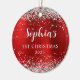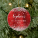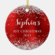 Silver Glitter Red Faux Foil 1st Christmas Photo Ceramic Ornament