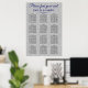 An elegant seating chart with a glittery silver background image with Royal blue and black fonts. This beautiful seating chart is part of a matching wedding suite that can be fully personalized.
