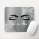 Silver Glitter Sparkle Eyelashes Monogram Name Mouse Pad