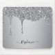 Glam Silver Glitter Sparkle Hand Lettered Name Custom Mousepad.