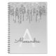Silver Modern Ombre Dripping Faux Glitter Sparkle Elegant Monogrammed Notebook for School or Work. The notebook is perfect for going back to school or for planning a wedding or bridal shower