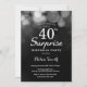 Silver Glitter Surprise 40th Birthday Invitation Card. Adult Birthday. Silver Glitter Bokeh Background. 13th 15th 16th 18th 10th 21st 30th 40th 50th 60th 70th 80th 90th 100th. Any Age. For further customization, please click the "Customize it" button and use our design tool to modify this template.