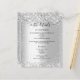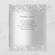 A modern, elegant wedding details/program/timeline. Faux silver looking background decorated with faux silver glitter, sparkles. Personalize and add your names and wedding details. Black coloured letters.