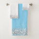 Silver Glittery Glam Edging on White and Teal Bath Towel Set