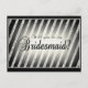 A very pretty modern silver striped glitter with a black background and a golden light makes this a very unique will you be my bridesmaid postcard. Note: This is a graphic artwork print and contains no glitter, so you will not have a glitter mess :)